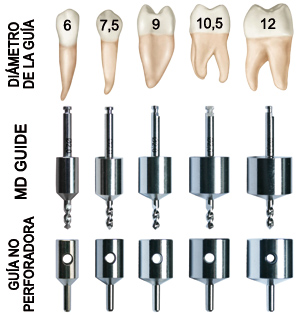 MD Guide is 100% compatible with all kinds and brands of implant. The purpose of MD Guide is only to create the first hole (pilot hole). Once done, you must switch for the drills of your preferred brand of implants in order to enlarge the hole to the appropriate shape (depth and diameter).