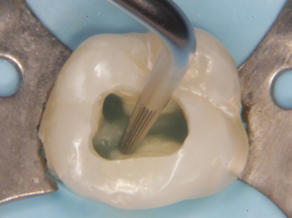 Permet d’éliminer la couche dentinaire et de repositionner l’entrée du canal pour un accès direct.