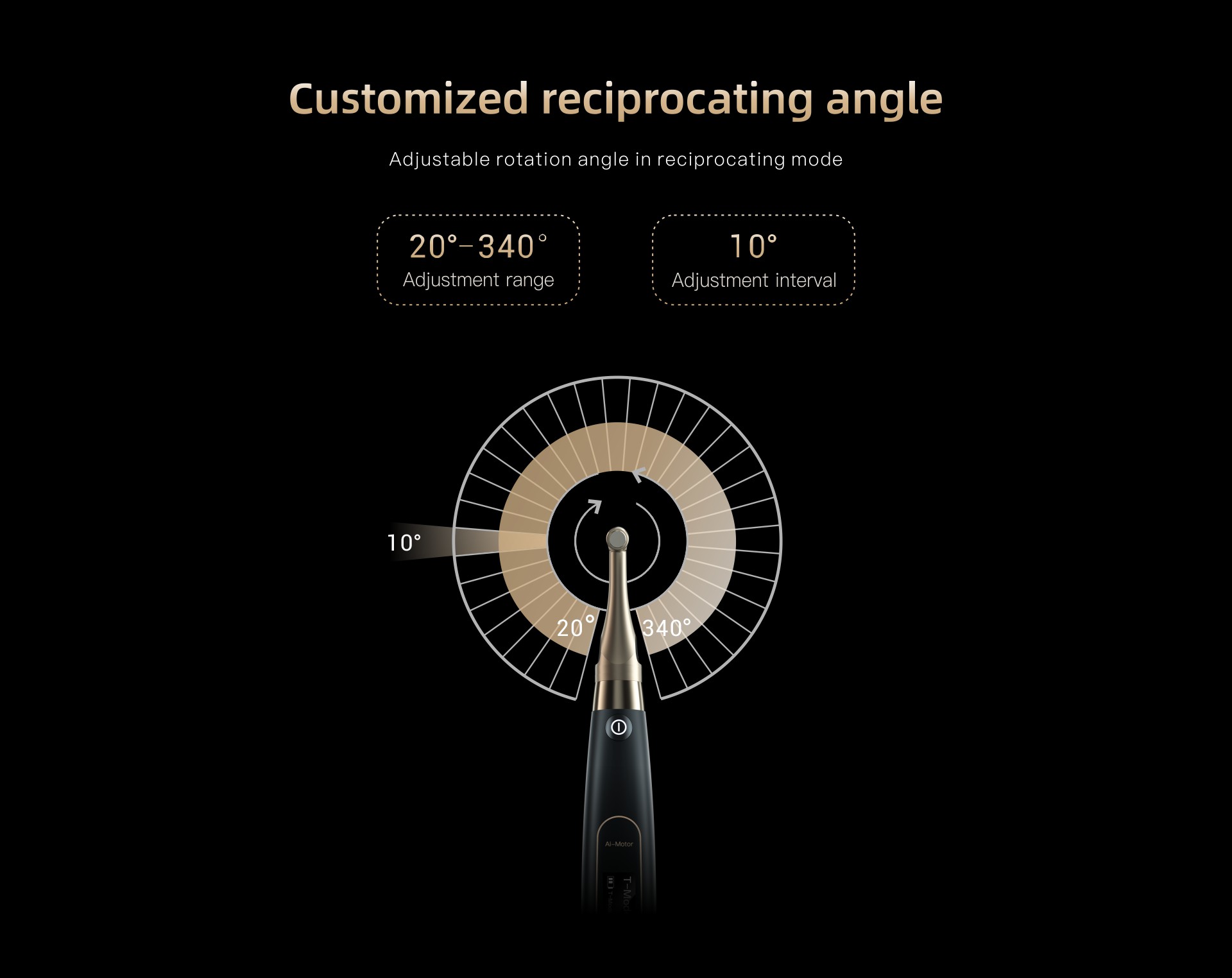 Rotation continue ou réciprocité, réglable par palier de 10°