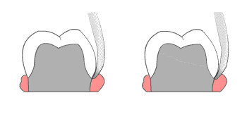 Come mostrato negli schemi accanto, lo strumento più piccolo consente di ottenere la coppia di forze più vicina all'asse del dente. Tale strumento genera quindi meno sollecitazioni sul dente
