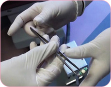 Una volta afferrata la corona fra gli attacchi della pinza, grazie alla perfetta tenuta della Geko, potrai chiedere alla tua assistente di applicare un sottile strato di isolante (vaselina,...) sulle facce visibili della corona (soprattutto mesiale e distale).