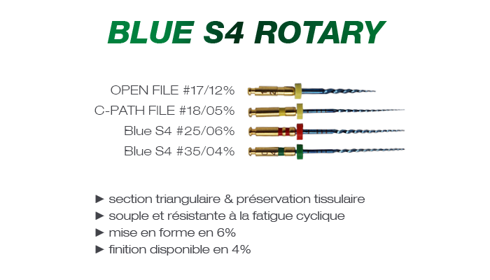 Alésage du système canalaire à l'aide de la séquence FANTA BLUE S4 Rotary jusqu'à la lime 35/04
