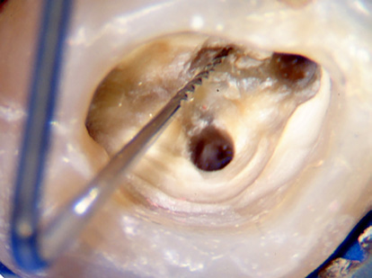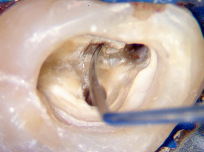 Élimine les calcifications et affine le plancher pour retrouver l’anatomie originale.