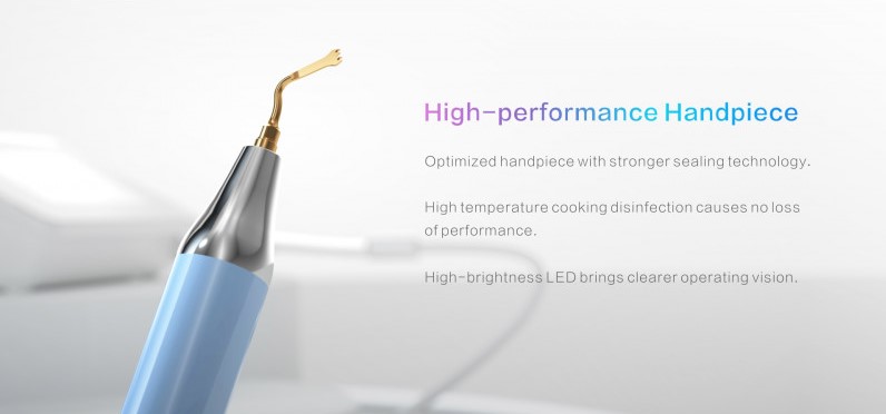 Equipé de 2 pièces à main LED + 14 inserts en titane (compatibilité MECTRON / WOODPECKER) Bone surgery : US1, US1L, US1R, US2, US3, US4, US5, Implant : UI2 Exelcymosis : UC1 Sinus Lifting : UL1, UL2, UL3, UL4, UL5