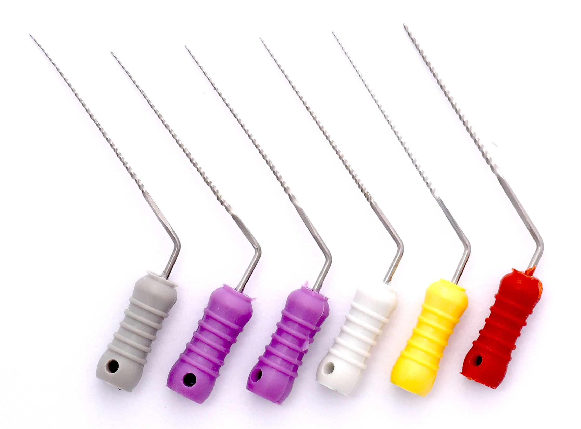 Les différents coloris correspondent au code couleur ISO et permettent de faciliter la préparation de la séquence à l'avance, pour repérer rapidement la lime à utiliser sur plateau pendant le traitement.