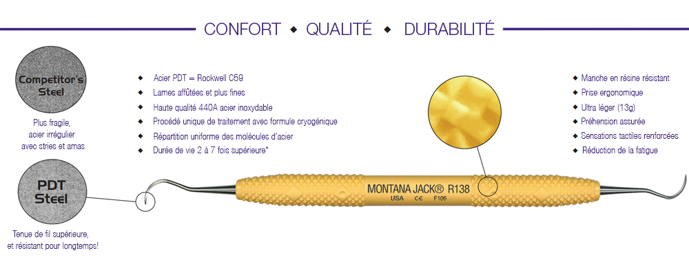 Tous les produits de Paradise Dental Technologies ont pour but d’améliorer votre confort, grâce à une ergonomie sans cesse repensée, une meilleure conception des lames et des portées et une durabilité sans cesse augmentée grâce aux matériaux et processus métallurgiques brevetés :