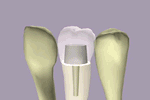 Frese progresivamente la base de la restauración de la corona para crear un espacio entre ésta y la cara oclusal de la raíz, y para que aparezca el perno progresivamente.