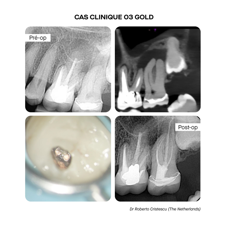 Programmez votre moteur endo sur un programme de mouvement alterné avec 150 degrés horaire (CW) / 30 degrés antihoraire (CCW). Un pré-élargissement doit être réalisé à la main avec les limes de votre choix. Utilisez le localisateur d'apex pour déterminer la longueur de travail. Même protocole que pour la rotation continue !